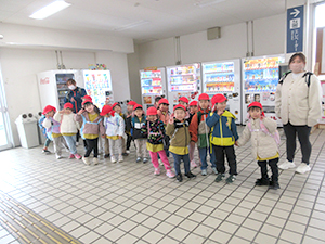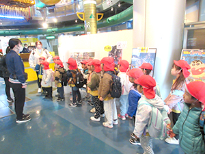 きりん組が電車に乗って、科学技術館に行きました