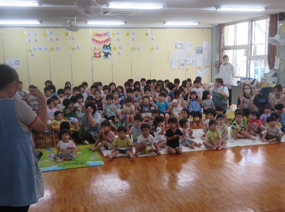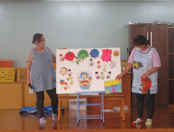 パネルシアターで歌やお話を見ました。